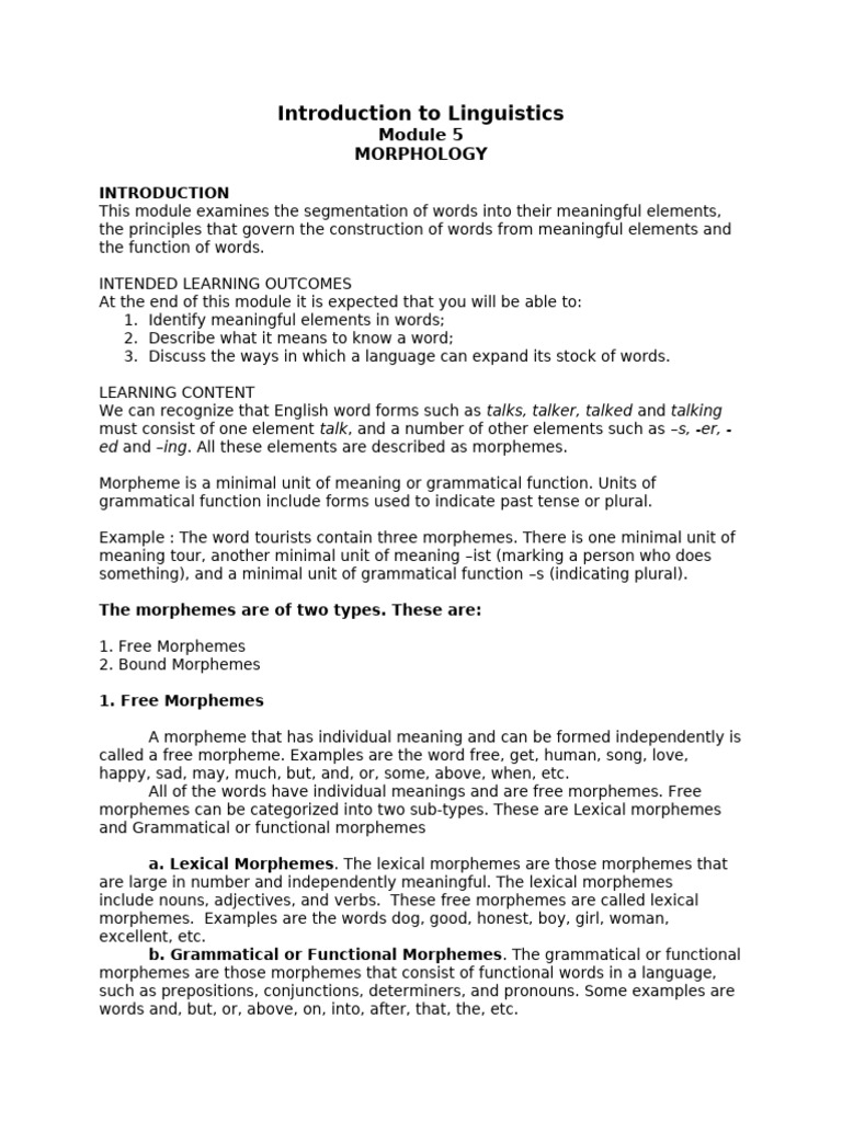 morphemes. Examples are the words dog, good, honest, boy, girl, woman,