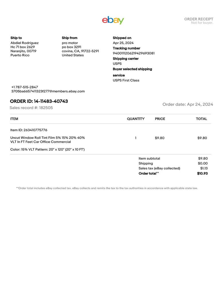 **Order total includes eBay collected tax. eBay collects and remits the tax to the tax authorities in accordance with applicable state law.