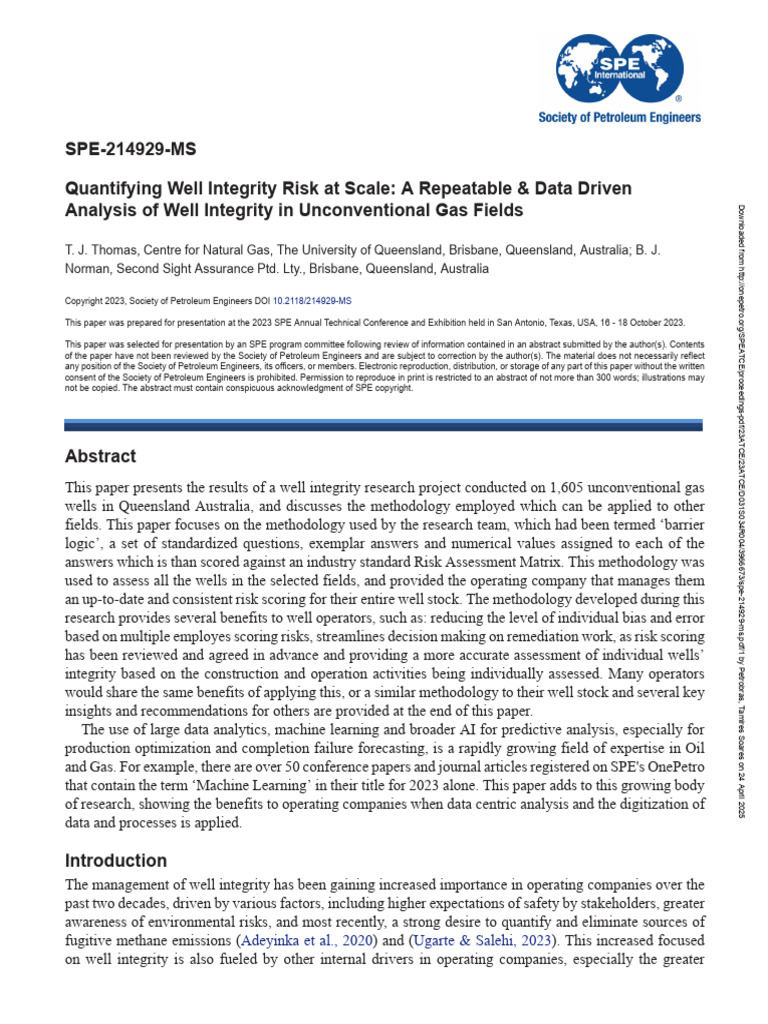 integrity evaluation project for 1,605 Coal Bed Methane (CBM), locally known as Coal Seam Gas (CSG)