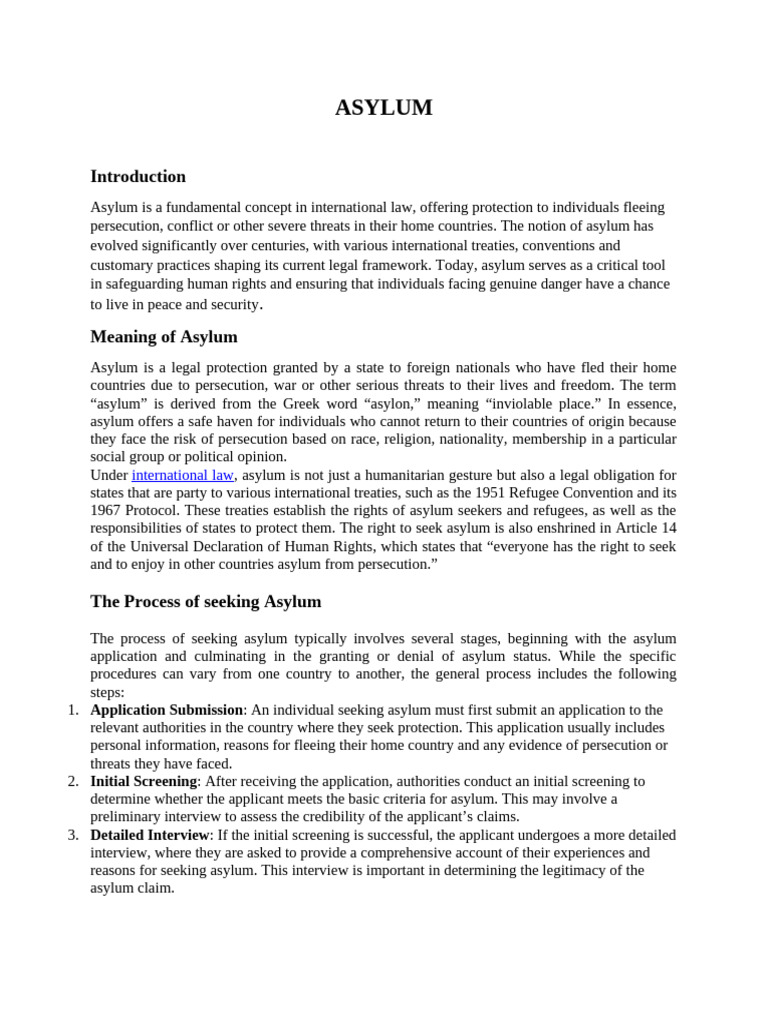 Asylum is a fundamental concept in international law, offering protection to individuals fleeing