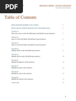 Nowadays, somehow, anyhow, everybody, into, moreover, cannot, together, today, sometimes, everyone, afterwards, everywhere, nobody, meanwhile, newspaper, outside, already, anything, anyone The following are written as two words: All right, at once, some time, at least, no one, on to 112. Unless and if Unless means if not and, therefore, it is superfluous to introduce another not into the following clause. Incorrect: Unless you do not give the keys of the safe you will be shot. Correct: Unless you give the keys of the safe, you will be shot. Perfect Your Sentences Page 48 Correct: If you do not give the keys of the safe, you will be shot. 113. Verbs The verbs enjoy, avoid, miss, postpone and suggest should be used with a gerund, and not an infinitive. Incorrect: She enjoys to sing. Correct: She enjoys singing. Incorrect: She avoids to meet people. Correct: She avoids meeting people. Incorrect: Mother suggested to consult a doctor. Correct: Mother suggested consulting a doctor. 114. -ward and wards Incorrect: You cant make a forwards pass in rugby. Correct: You cant make a forward pass in rugby. The words backward(s), forward(s), upward(s), northward(s) etc., do not have the s when they are used as adjectives. When these words are adverbs, they can be used with or without s. 115. Well and Good