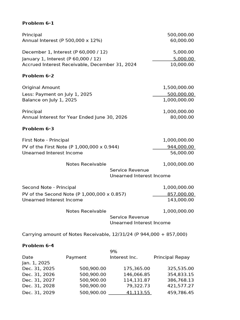 Carrying amount of Notes Receivable, 12/31/24 (P 944,000 + 857,000)
