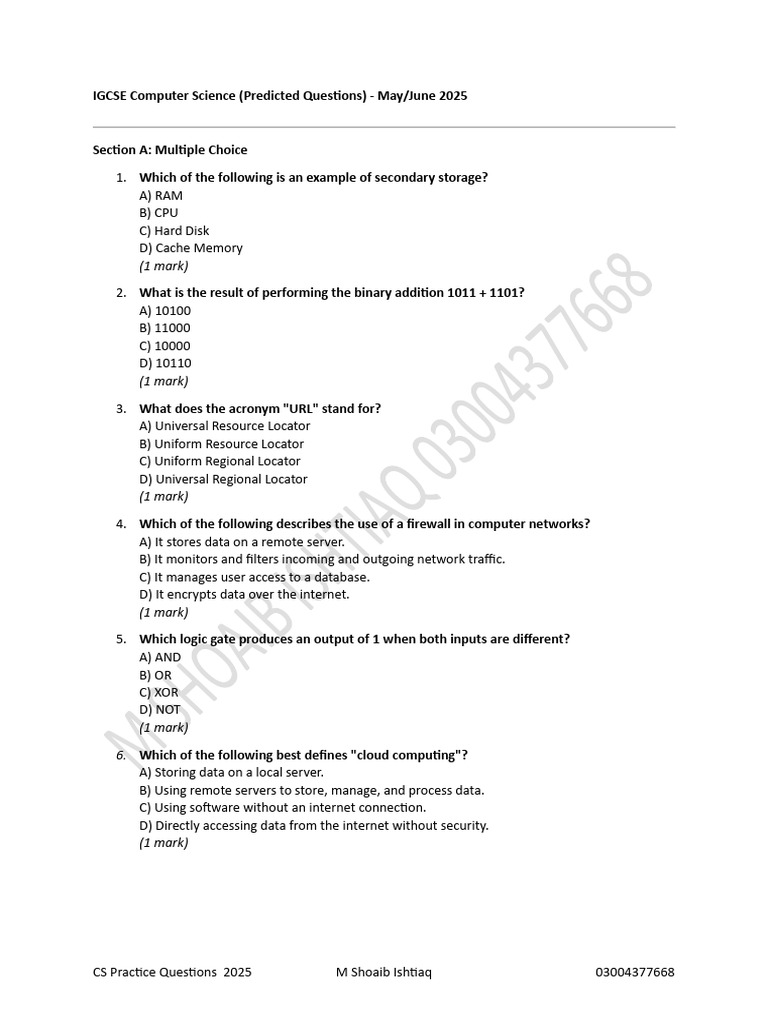 IGCSE Computer Science (Predicted Questions) - May/June 2025