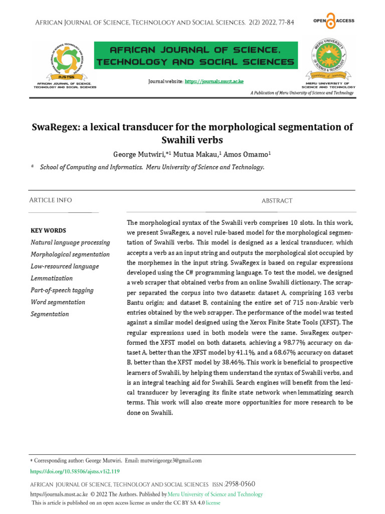 study. The model is rule-based, and the morphological 08(06). http://repository.dkut.ac.ke:8080/xmlui/