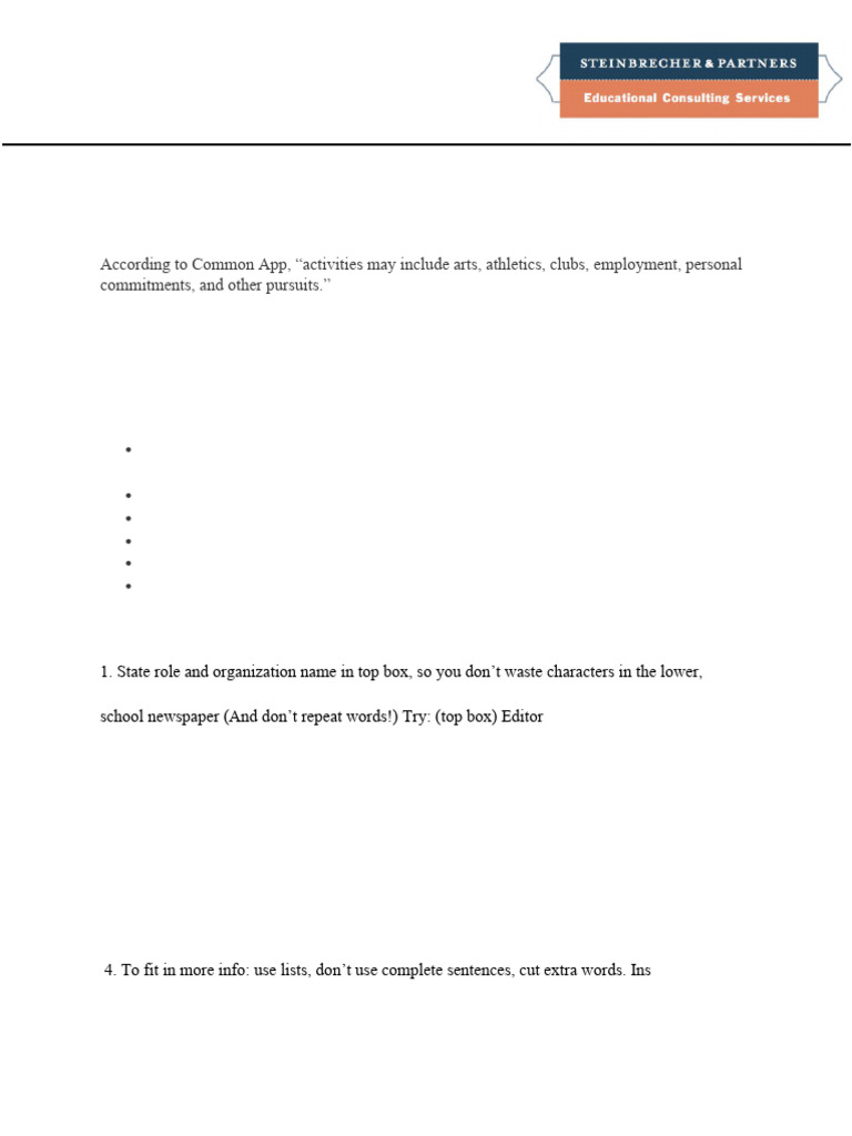 In addition, Common App requests the following information for each activity: