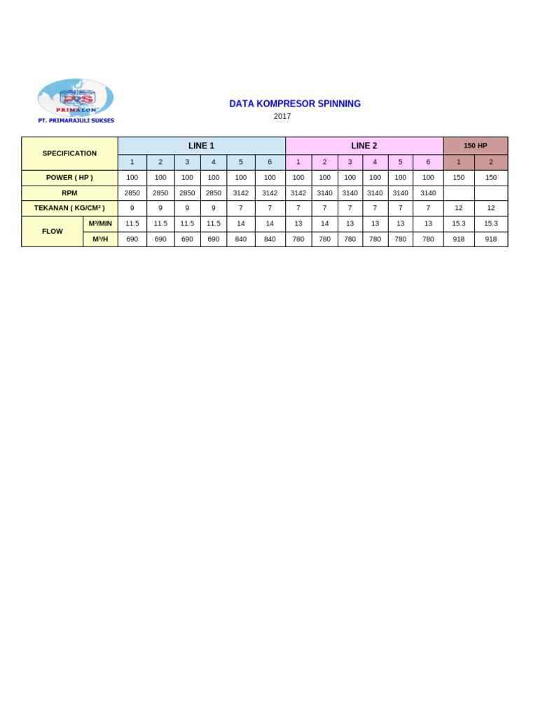 SUCTION GUN Comp. 150 HP No. 3 Line 1 stand by ( PLN )
