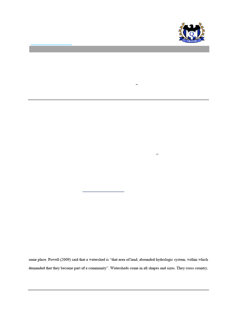 same place. Powell (2009) said that a watershed is “that area of land, abounded hydrologic system, within which
