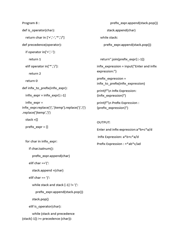 Program 8 : prefix_expr.append(stack.