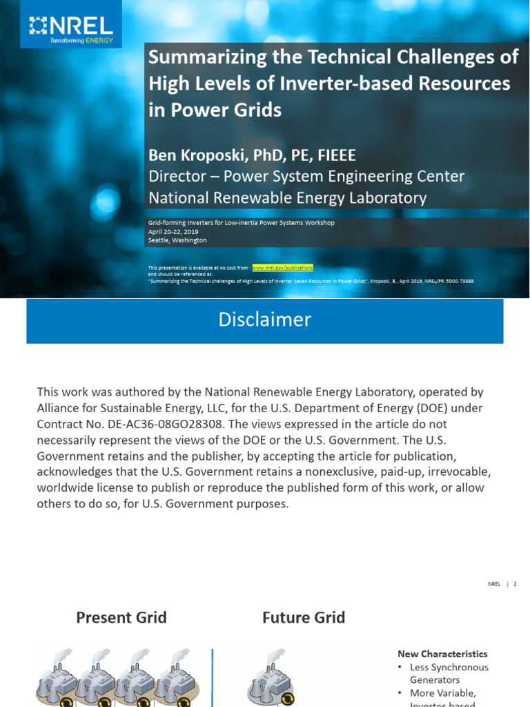 ”Summarizing the Technical challenges of High Levels of Inverter-based Resources in Power Grids”, Kroposki, B., April 2019, NREL/PR-5D00-73869