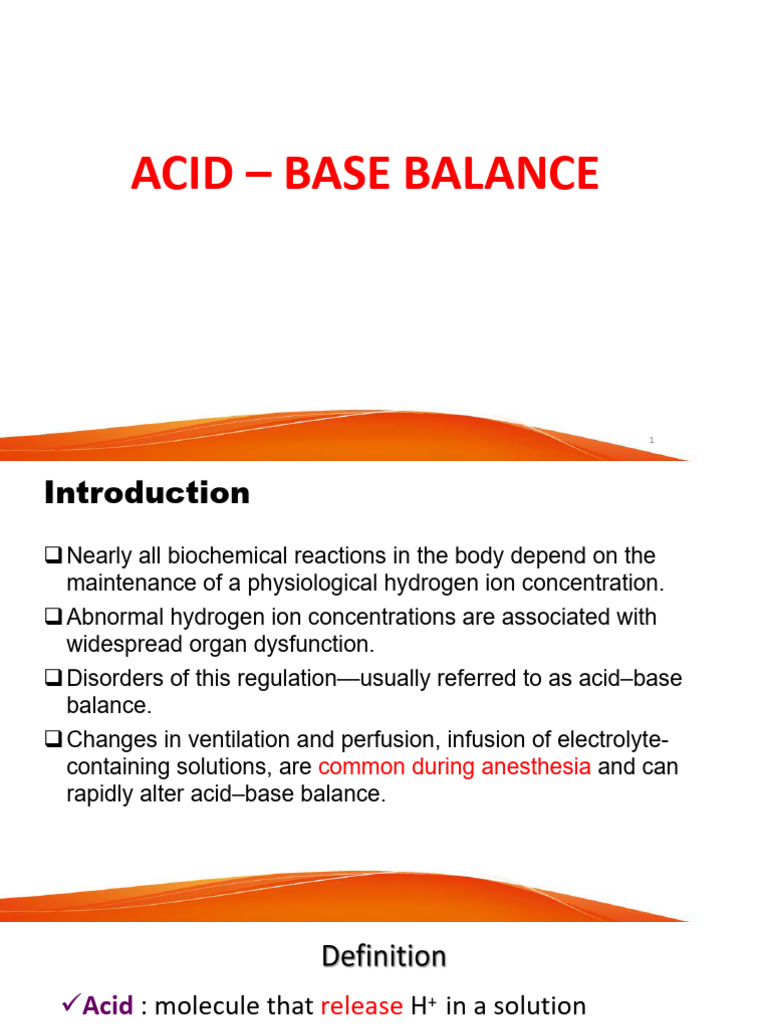 • The term “Acidosis” refers to the addition of excess hydrogen ions
