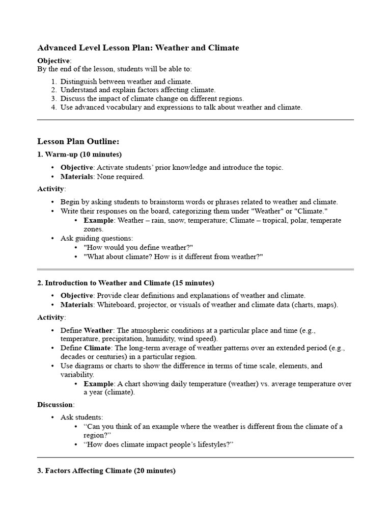 • Objective: Provide clear definitions and explanations of weather and climate.