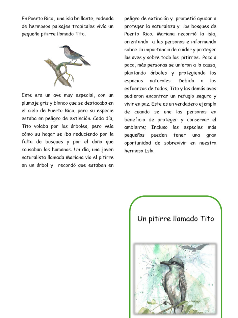 pequeño pitirre llamado Tito. Puerto Rico. Mariana recorrió la isla,