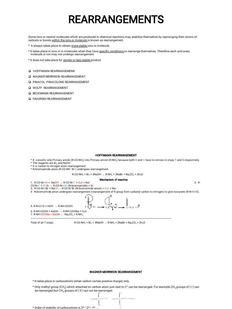 radicals or bonds within the ions or molecule is known as rearrangement.