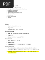 1. Binary to Decimal: Multiply each bit by powers of 2 and sum.