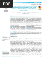 PLEASE NOTE: The M-CHAT was not designed to be scored by the person taking it. In the validation sample, the authors of the M-CHAT scored all checklists. If parents are concerned, they should contact their childs physician. Abstract Autism, a severe disorder of development, is difficult to detect in very young children. However, children who receive early intervention have improved long-term prognoses. The Modified Checklist for Autism in Toddlers (M-CHAT), consisting of 23 yes/no items, was used to screen 1,293 children. Of the 58 children given a diagnostic/developmental evaluation, 39 were diagnosed with a disorder on the autism spectrum. Six items pertaining to social relatedness and communication were found to have the best discriminability between children diagnosed with and without autism/PDD. Cutoff scores were created for the best items and the total checklist. Results indicate that the M-CHAT is a promising instrument for the early detection of autism. Background The M-CHAT is an expanded American version of the original CHAT from the U.K (Baron-Cohen et al., 1992; 1996). The M-CHAT has 23 questions using the original nine from the CHAT as its basis. The goal of the ongoing M-CHAT research is to demonstrate adequate psychometric properties of the M-CHAT (sensitivity, specificity, positive and negative predictive power). The M-CHAT is available for clinical and research use, with the following caveats: 1. Clinical use should proceed with caution, given that the current scoring system is designed to maximize sensitivity (i.e., identify as many children with autism spectrum disorders as possible), which results in a number of false positive cases (i.e., children who will not be diagnosed with an autism spectrum disorder, although they fail the M-CHAT). Once cross-validation of the M-CHAT is complete, the scoring may be revised. 2. The M-CHAT is not designed to detect all possible developmental disorders. Any parents who have concerns about their child should see their childs physician, regardless on the childs score on the M-CHAT.