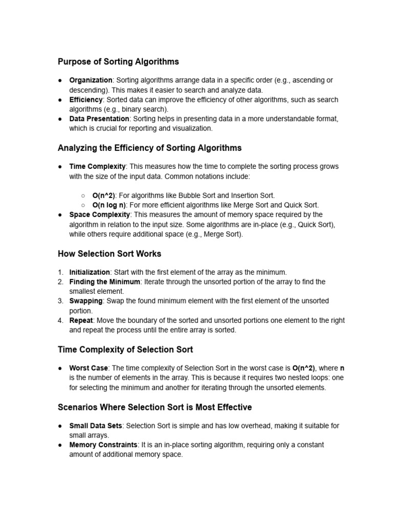 ● Small Data Sets: Selection Sort is simple and has low overhead, making it suitable for