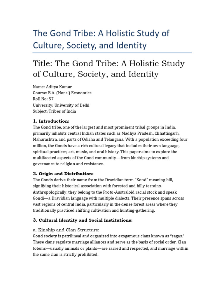 3. Mehta, J. S. “Gonds of Central India.” Anthropological Survey of India.