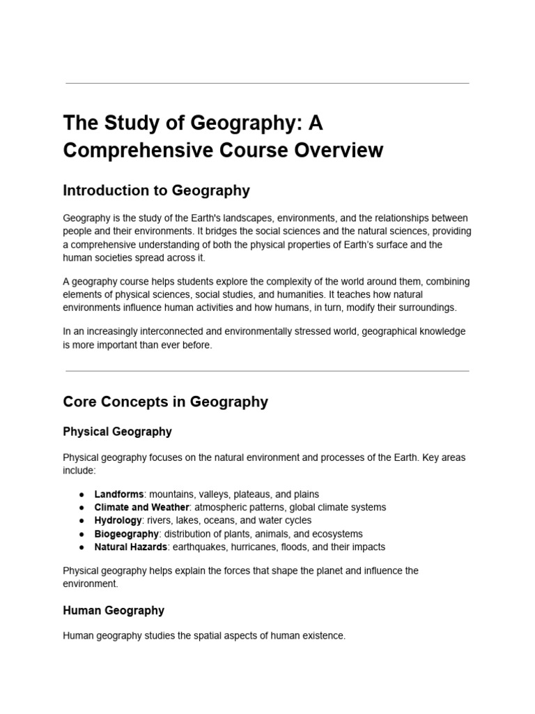 A geography course offers a rich and comprehensive understanding of the physical world and