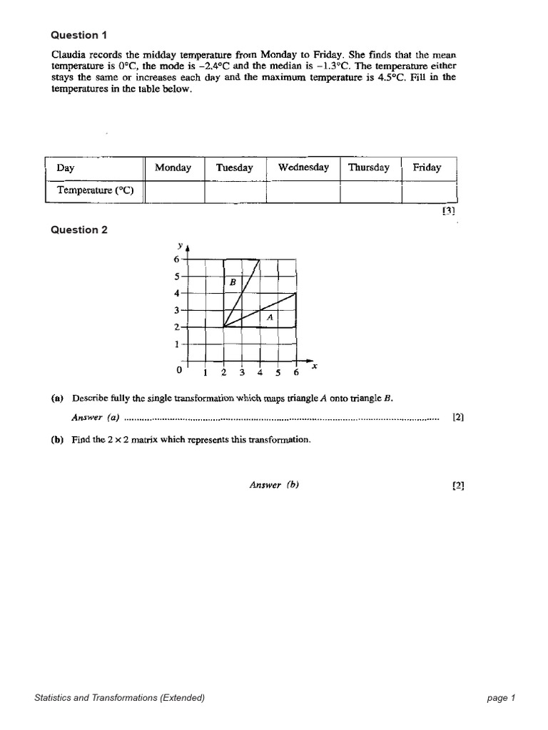 *Indicates that it is necessary to look in the working after an incorrect answer