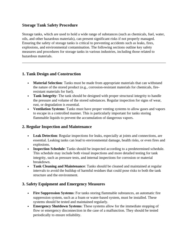 Hazardous Materials Handling: All personnel who interact with storage tanks must be