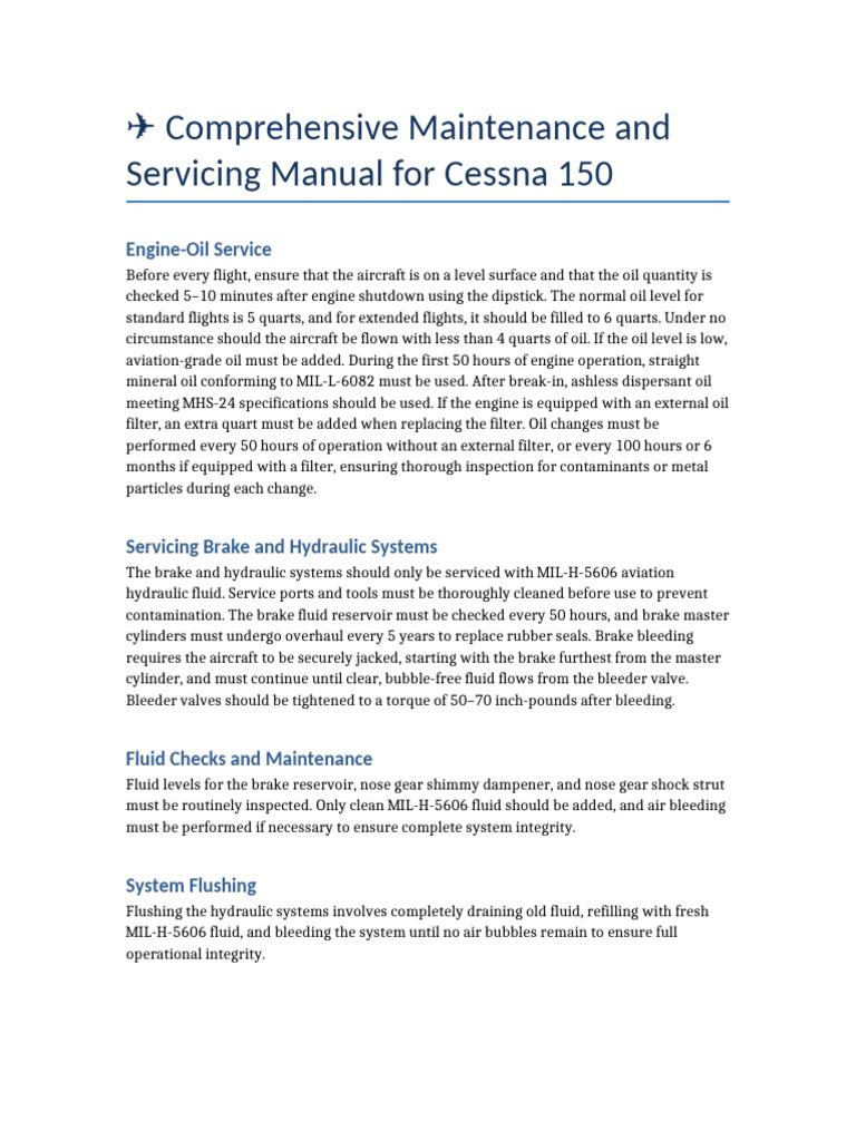 The brake and hydraulic systems should only be serviced with MIL-H-5606 aviation