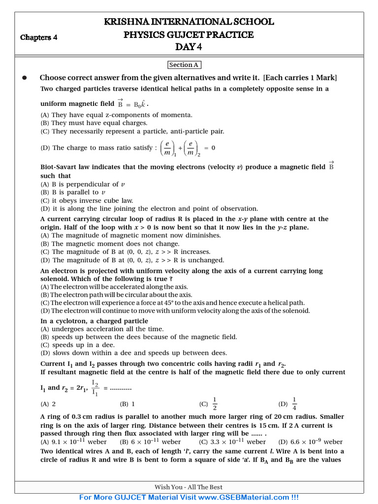 GUJCET Physics Paper Ch-4 (EM) (GSEBMaterial - Com)