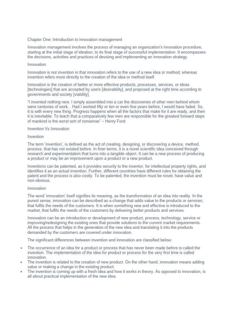 of the new idea. The invention requires scientific skills. Unlike innovation, this requires a broad set
