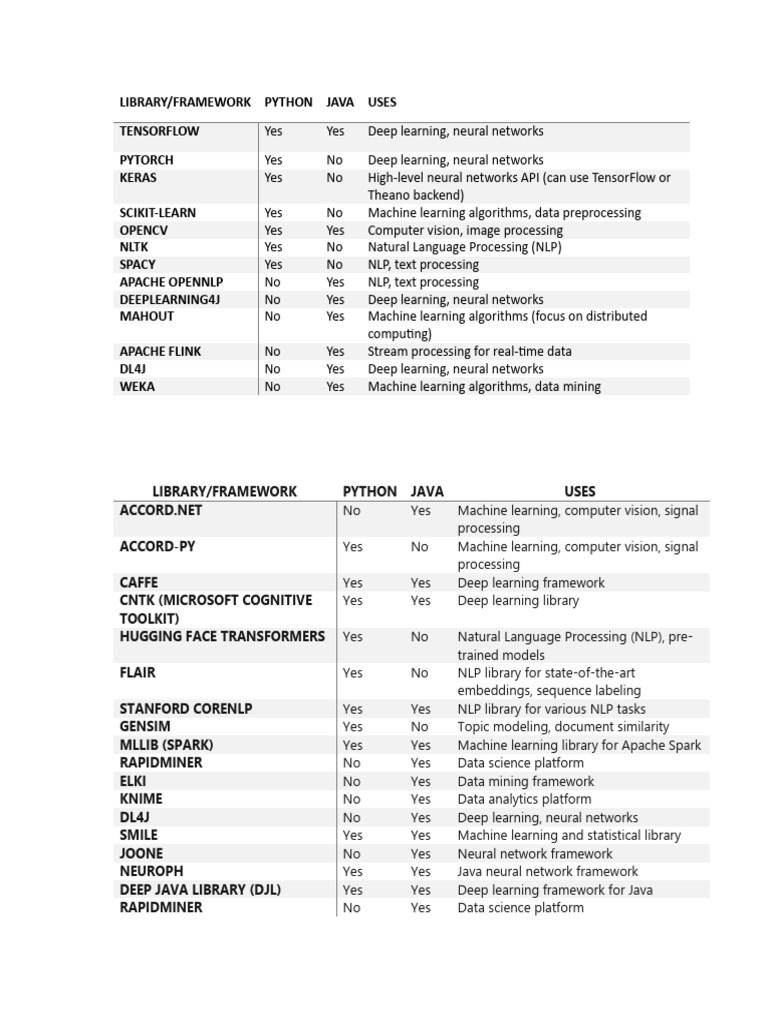 LIBRARY/FRAMEWORK PYTHON JAVA USES