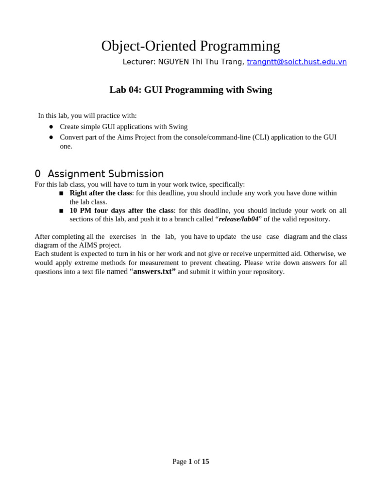 Lab 04: GUI Programming with Swing