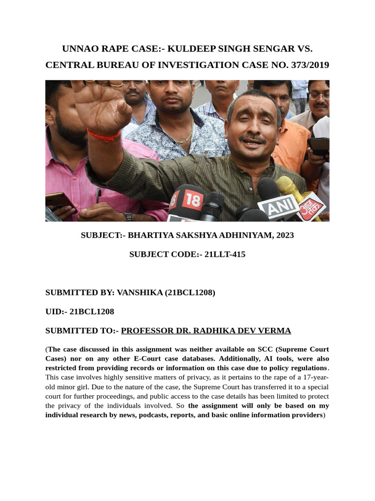 UNNAO RAPE CASE:- KULDEEP SINGH SENGAR VS.