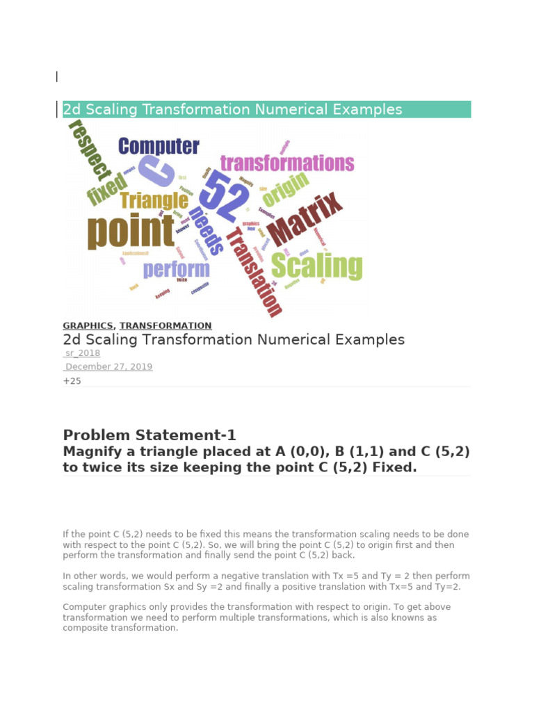 scaling transformation Sx and Sy =2 and finally a positive translation with Tx=5 and Ty=2.