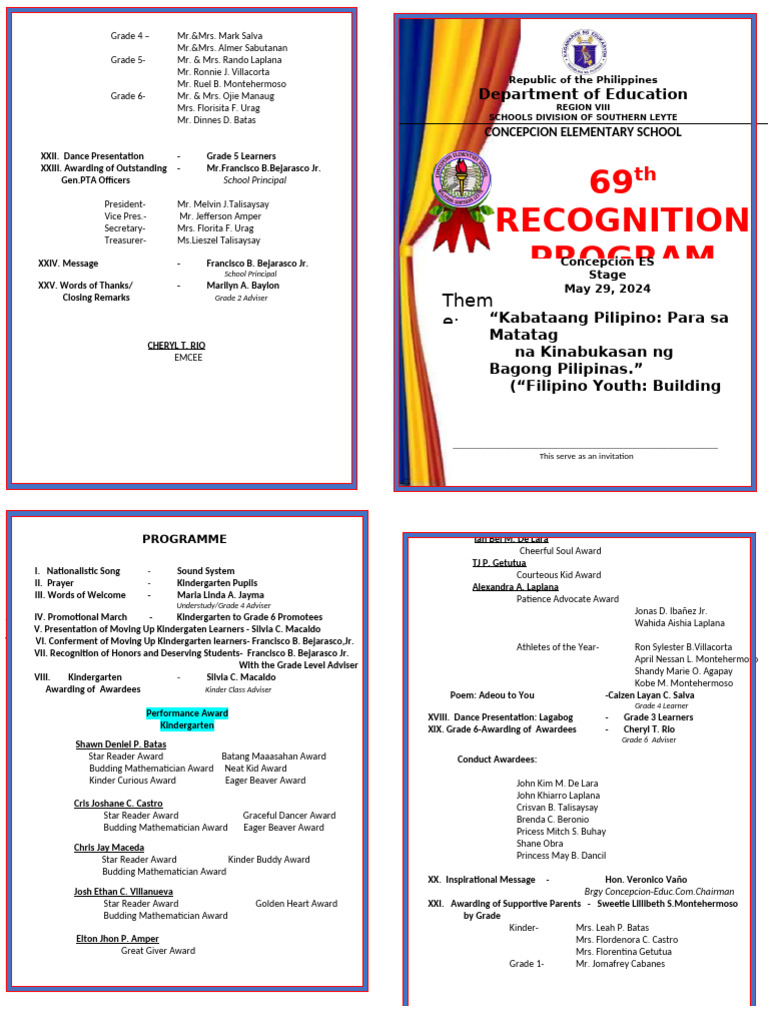 V VI. Conferment of Moving Up Kindergarten learners- Francisco B. Bejarasco,Jr.