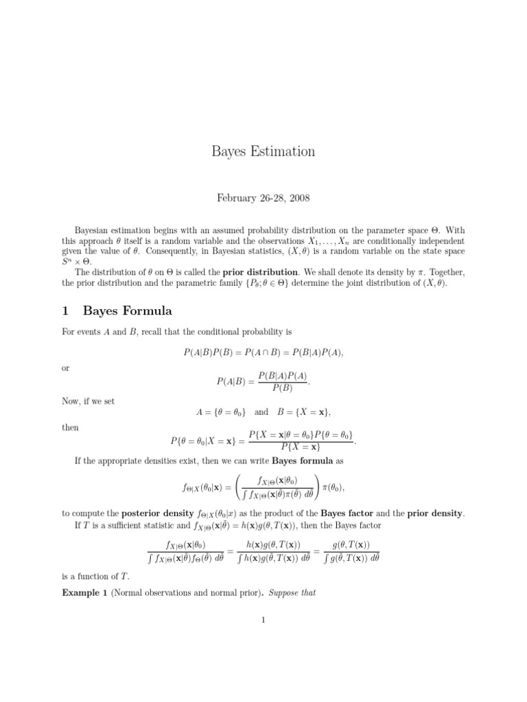 Bayesian estimation begins with an assumed probability distribution on the parameter space Θ. With