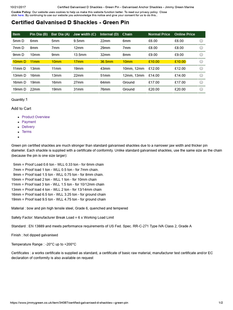 10/21/2017 Certified Galvanised D Shackles - Green Pin - Galvanised Anchor Shackles - Jimmy Green Marine