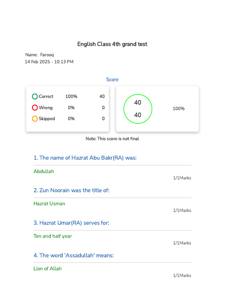 Correct 100% 40