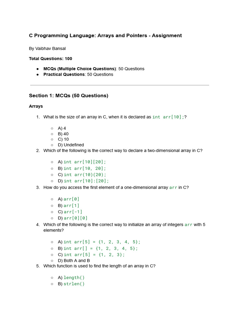 ○ B) int arr[] = {1, 2, 3, 4, 5};