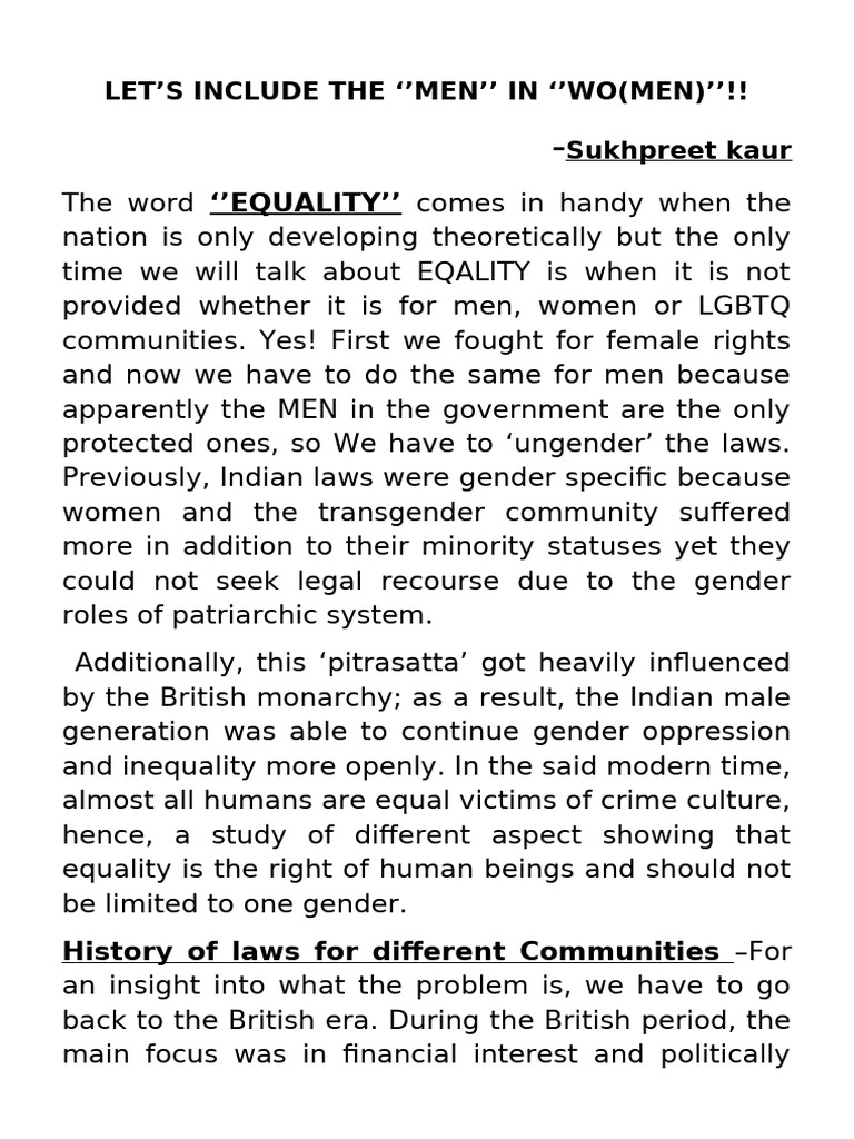 Previously, Indian laws were gender specific because