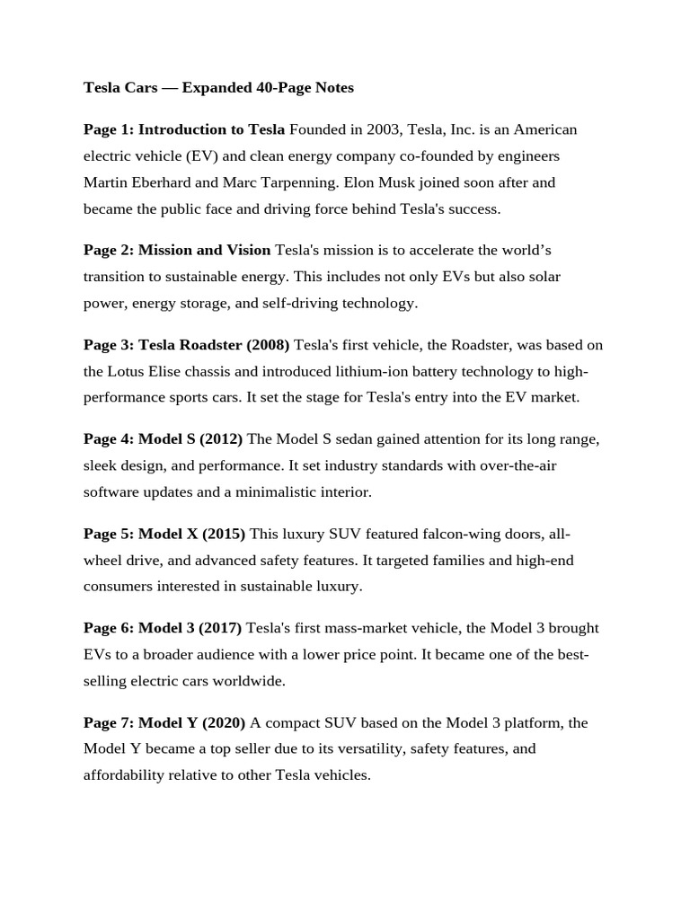 Tesla Cars — Expanded 40-Page Notes