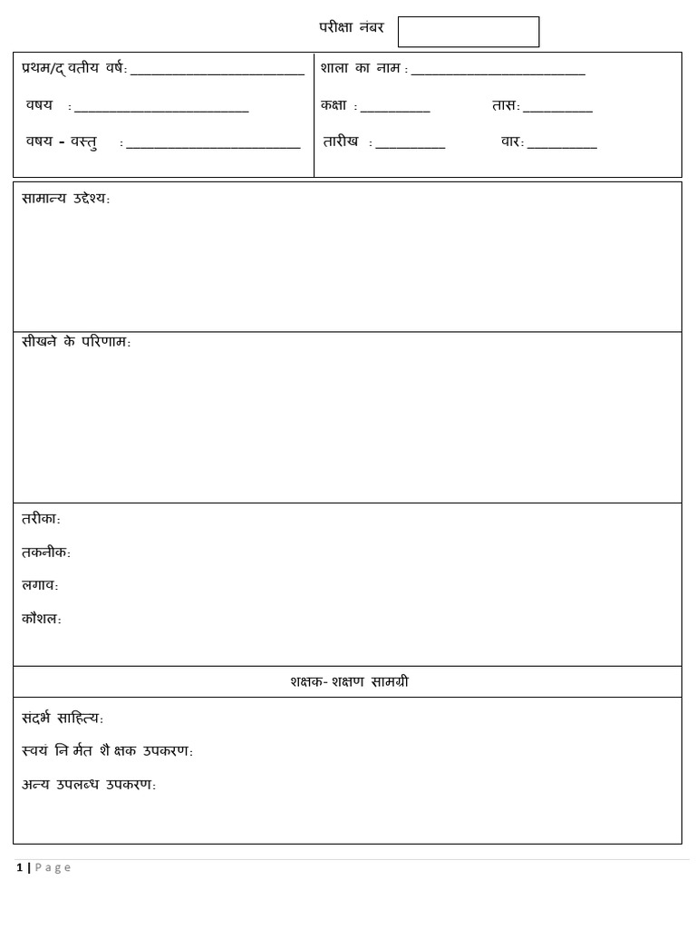 विर्य : _________________________ कक्षा : __________ तास: __________
