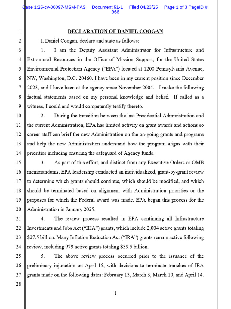 1 DECLARATION OF DANIEL COOGAN
