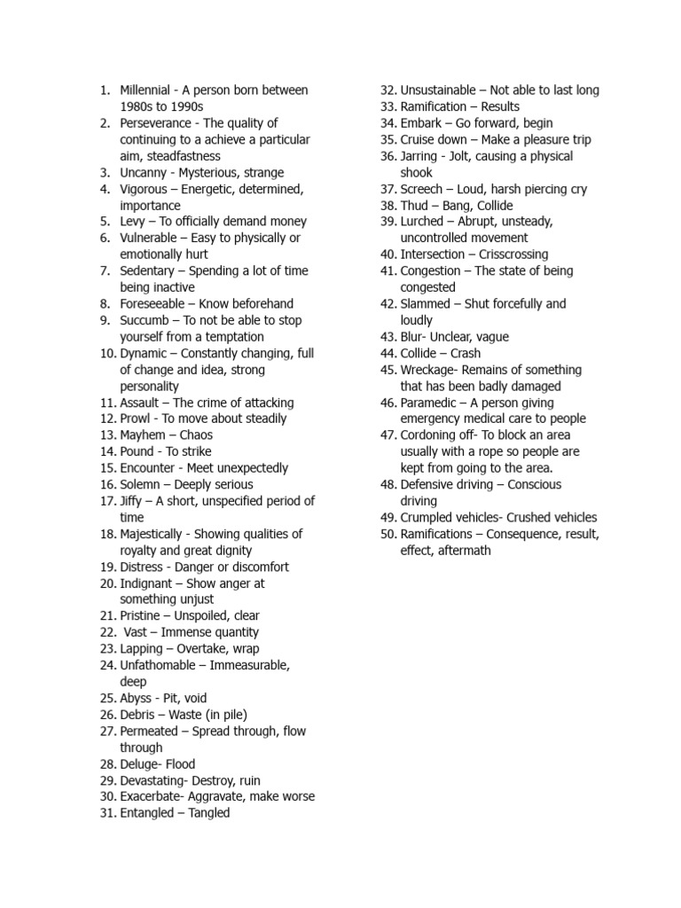 10. Dynamic – Constantly changing, full 44. Collide – Crash