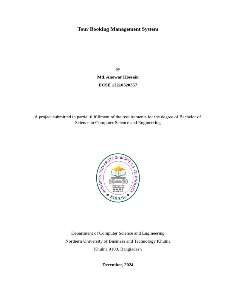 This is to certify that the project work submitted by Md. Anowar Hossain entitled Tour