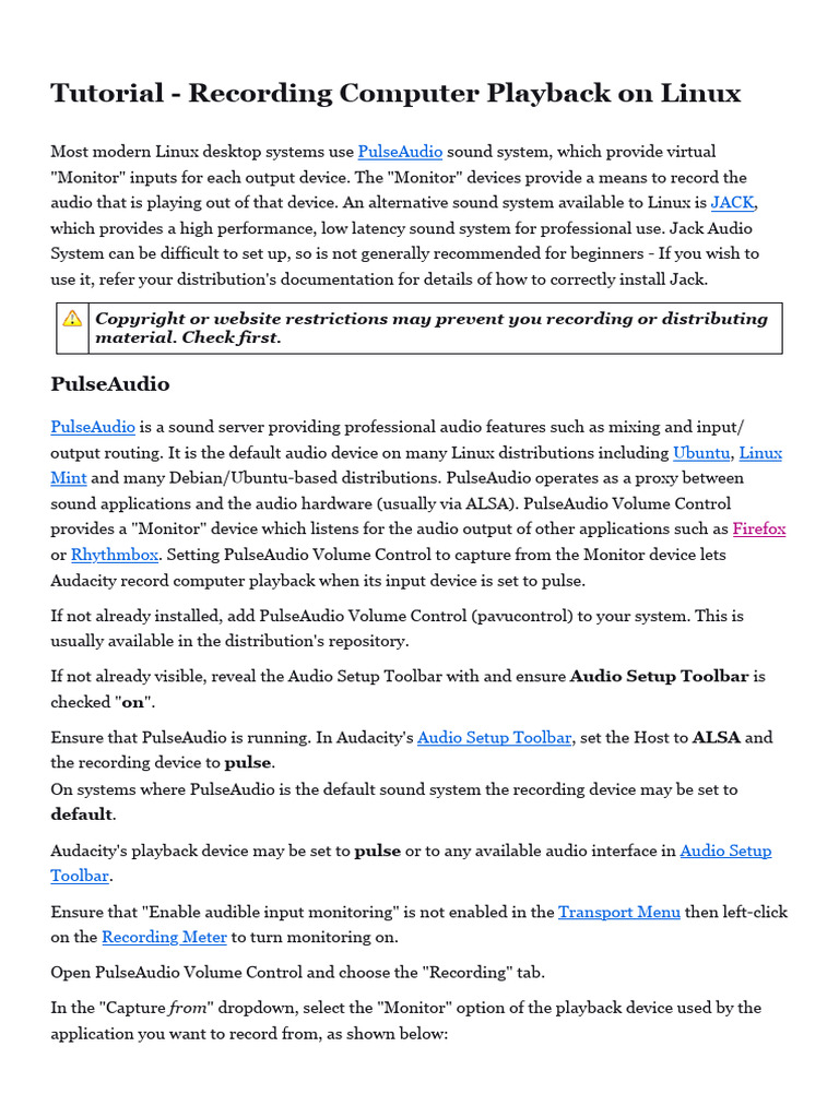 audio that is playing out of that device. An alternative sound system available to Linux is JACK,