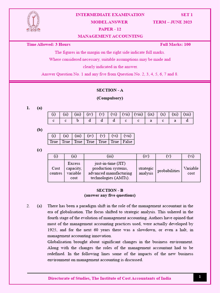 MODEL ANSWER TERM – JUNE 2023