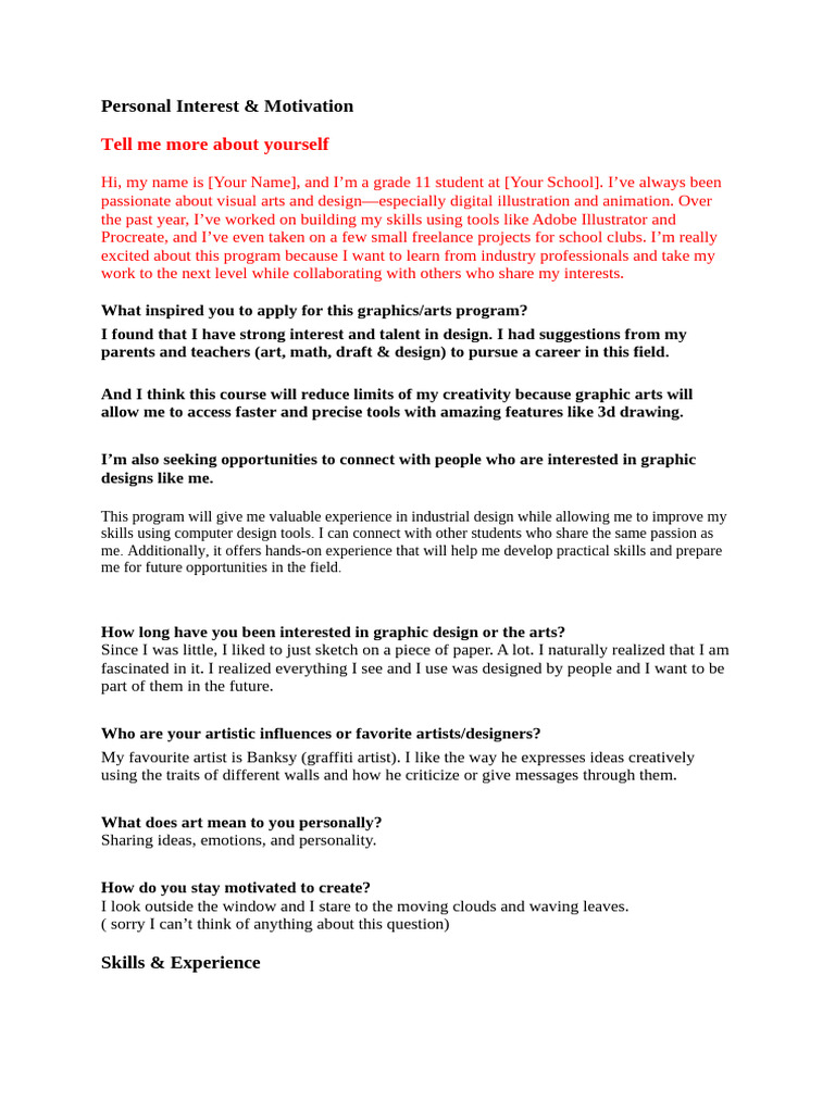 Personal Interest & Motivation