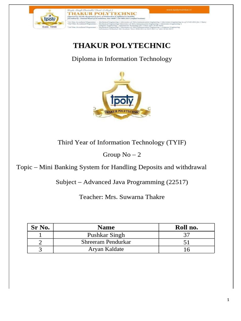 Topic – Mini Banking System for Handling Deposits and withdrawal