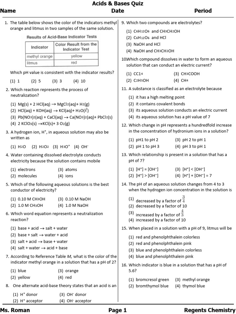 (1) pH = 1 (3) pH = 3 25. Which statement describes the characteristics of an