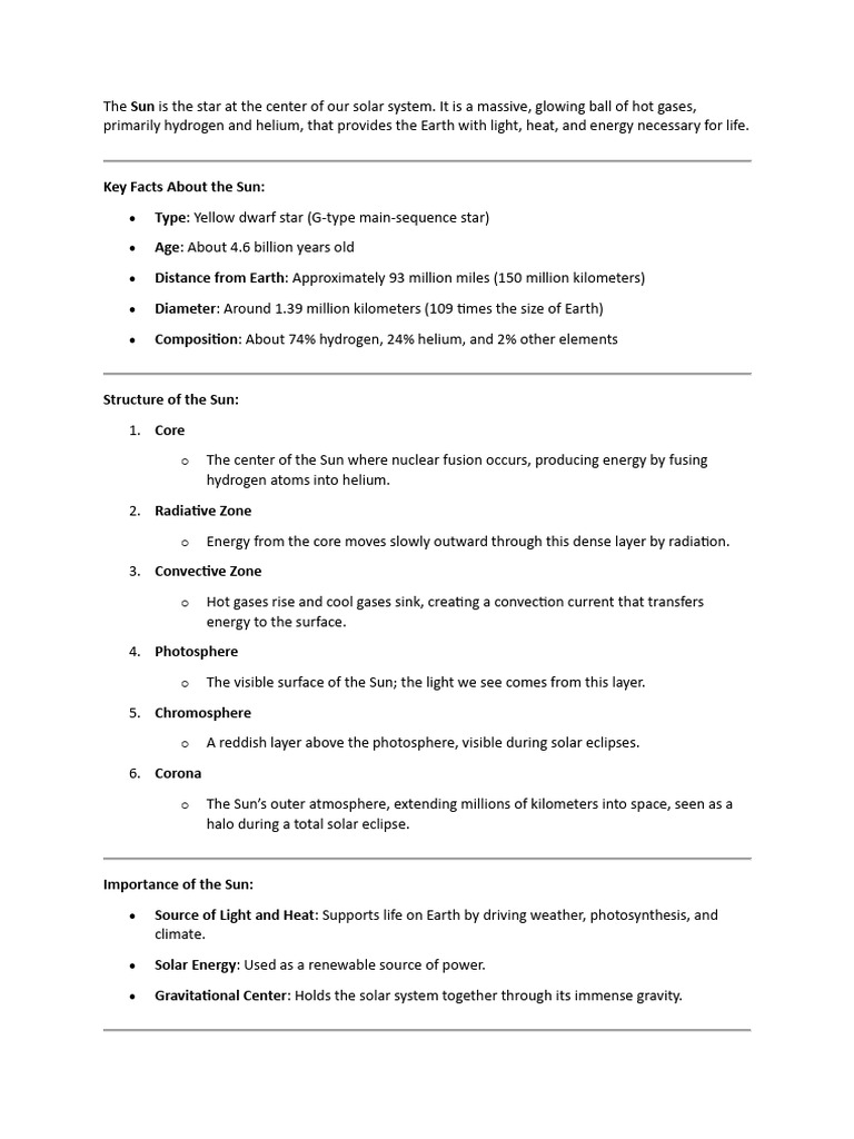 Key Facts About the Sun: