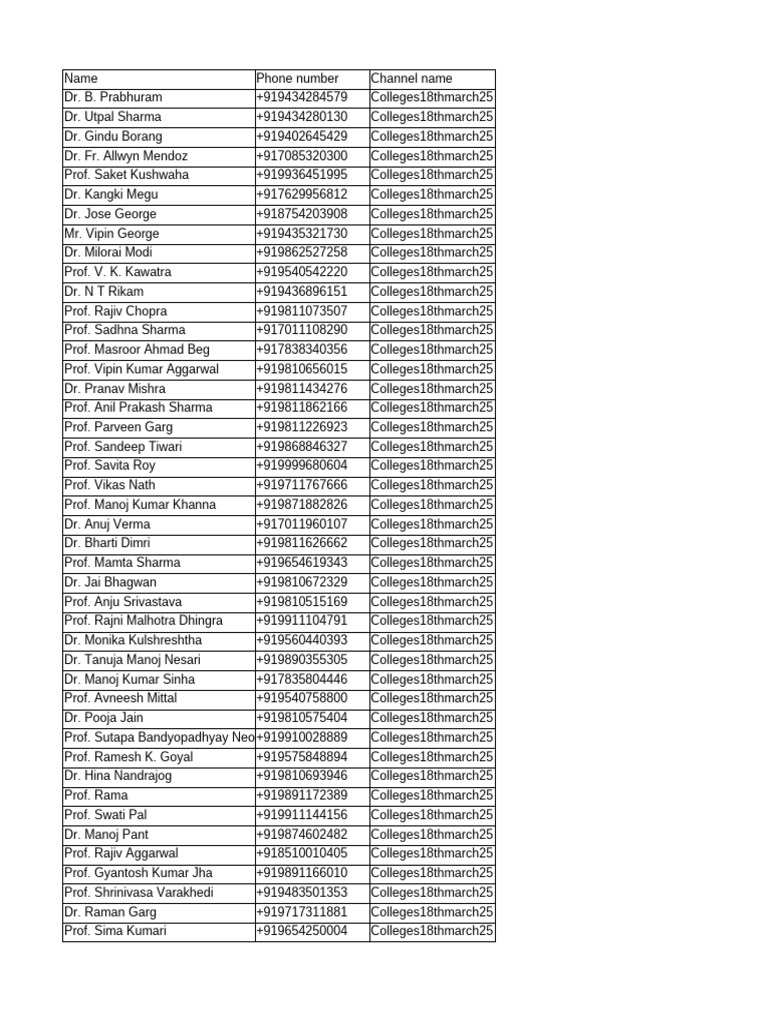 Name Phone number Channel name