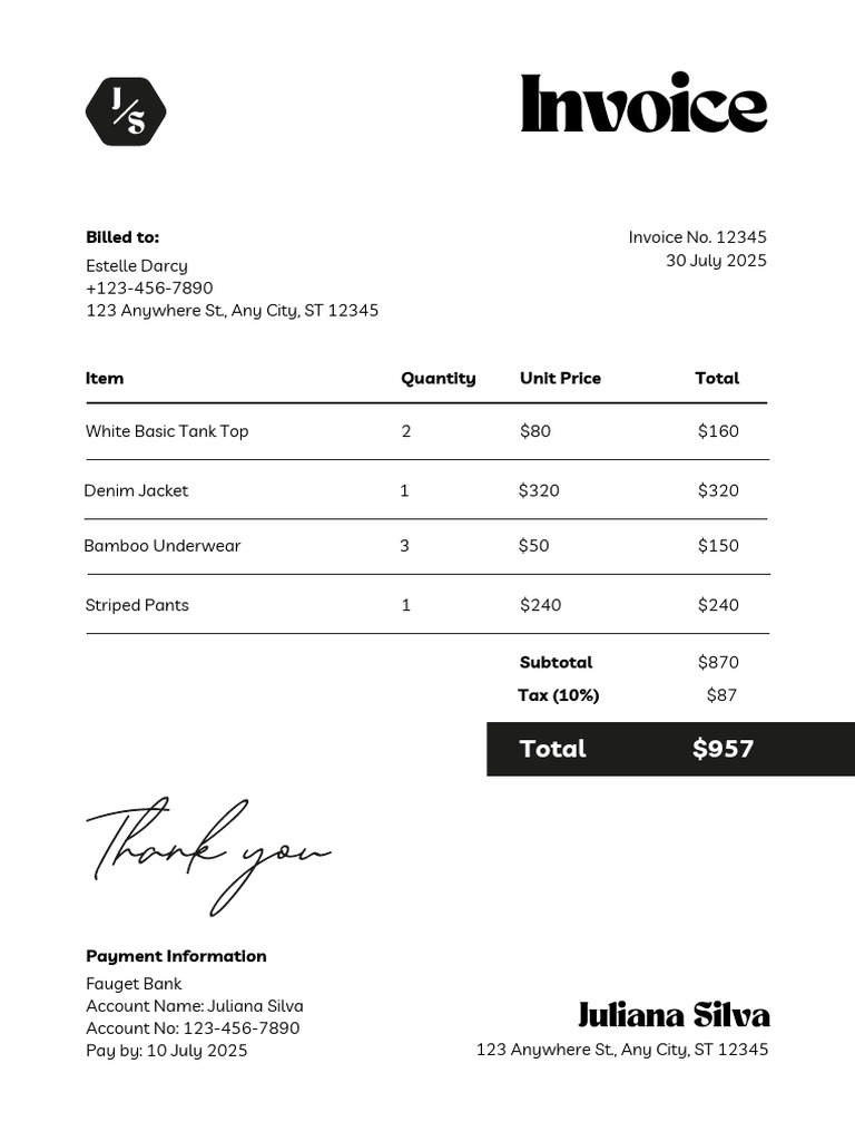 Pay by: 10 July 2025 123 Anywhere St., Any City, ST 12345